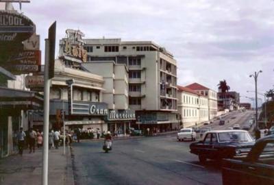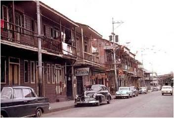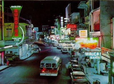 Avenida Central de noche en los 70
